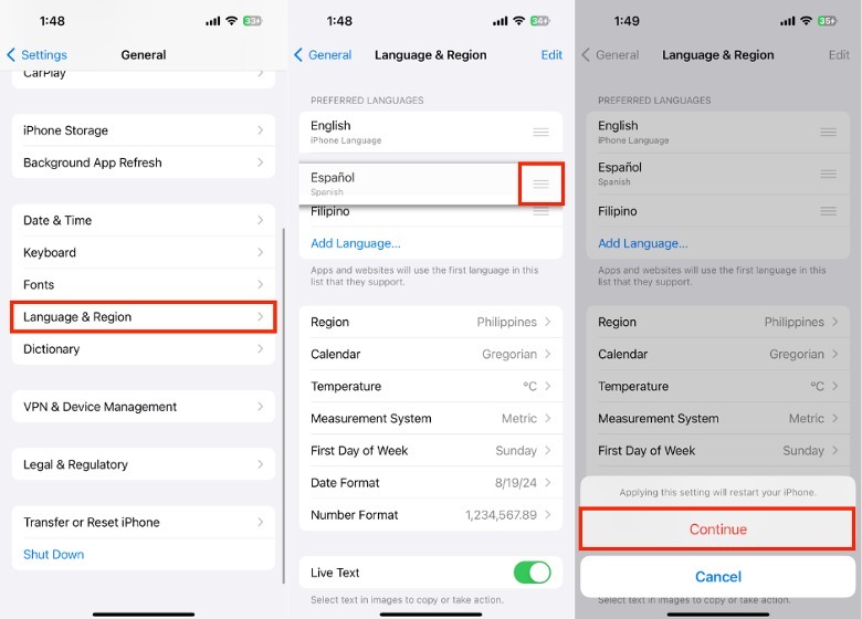 - Tap General > Language & Region.