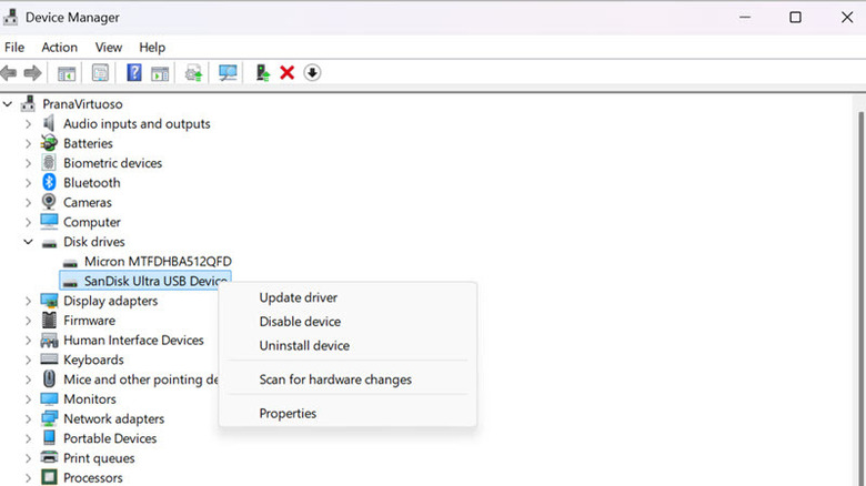 - Find your drive, right-click on it, and select the "Disable device" option.