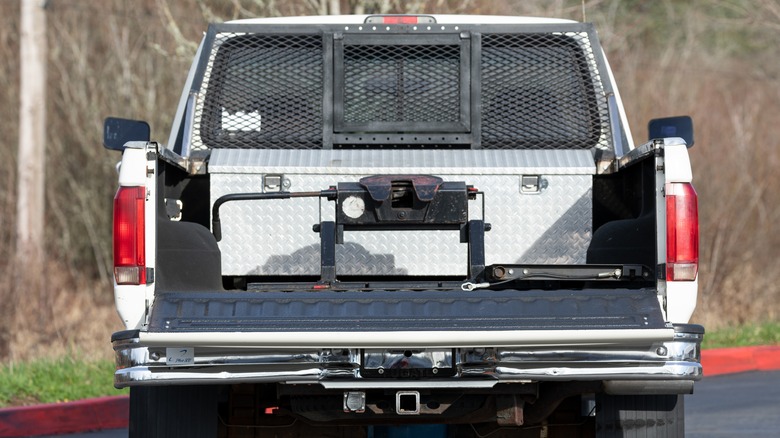 Two of the most prominent forms of trailer hitches used by trucks today are the gooseneck hitch and the 5th wheel hitch. A gooseneck hitch is much simpler, with the only distinctive element being a silver orb sticking up out of your truck's bed. A 5th wheel hitch, meanwhile, has a higher profile, as it's an entirely separate device that must be mounted to the bed. Both hitch types can handle loads of comparable weight, but the precise way they're installed, as well as how they bend and move while in motion, may influence your decision on which to go with before hitching up.