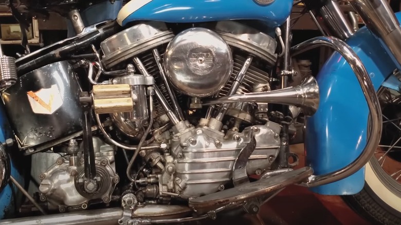 With the new engine came internally pumped oil using a dry sump, a 4-speed constant-mesh transmission, and a displacement of 60.3 cubic-inches. Early examples suffered from oil leakage issues and weak valve springs were prone to break, but these issues were resolved within a few years of production. WWII disrupted development and production of all motorcycles, and by the time it ended, the Knucklehead was due for a replacement. The Knucklehead only lasted a couple more years after civilian production resumed — its production ended in 1947. Many Knucklehead models are now valued at up to $140,000.