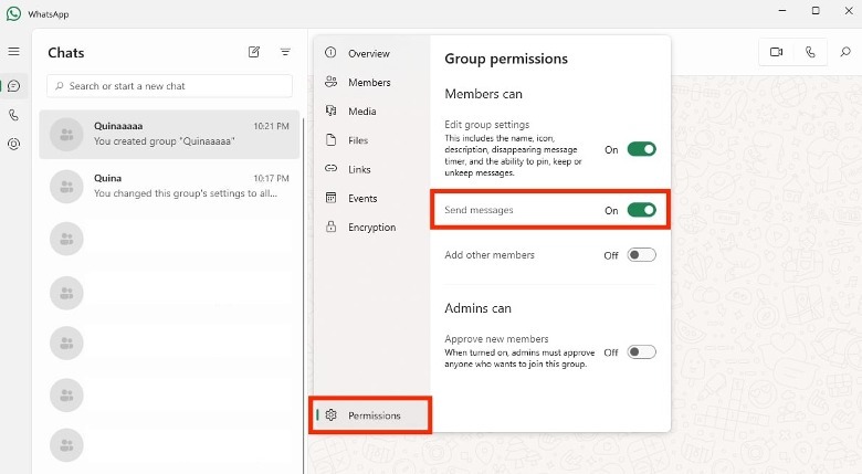 Managing WhatsApp group chats on Windows
