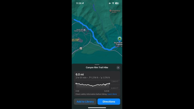 You'll have to use Apple Maps for this one. Navigate to the hike you plan on taking, and if Apple Maps has it, tap Add to Library. If a particular hike isn't supported by Apple Maps, you can simply make your own; create a starting point and then draw out your route. Double-check that it's saved offline before hitting the trailhead. Later, you should be able to get fairly accurate GPS directions even when in a no-service area. Better yet, Apple Maps will give you turn-by-turn walking directions so you can enjoy the view rather than be staring at your phone the whole time.
