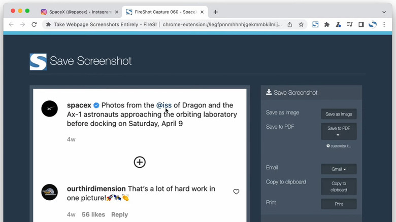 This one is pretty straightforward, but sometimes, that's all you need. GoFullPage is a one-click solution for grabbing a scrolling screenshot of an entire web page, and that's basically all it does. It has some customization settings, but overall, it's very purpose-built and does what it's supposed to do well. Just click the camera icon that it adds to your row of extension buttons, and the Pac-Man inspired "Screen capture in progress..." dialogue pops up until it's finished its job. Unsurprisingly, it can act up on sites (like SlashGear) that have infinite scroll enabled, in which case something like FireShot is probably a better bet. But otherwise? GoFullPage does exactly what it's supposed to do.