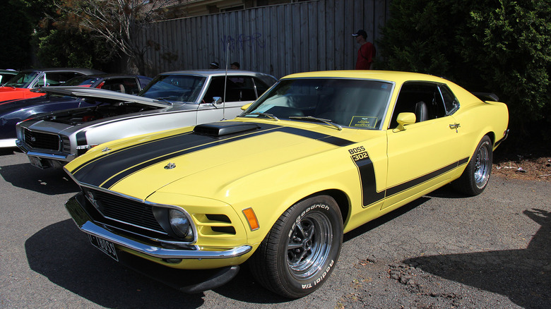 This is likely the most intimidating-looking Mustang ever built. Seeing this grille in your rearview mirror is an experience, with its tall arrowhead physique looking more like a curled fist than a car. It's no wonder, then, that this machine found a new audience with the release of "John Wick," where the titular character drives a Boss 429 with custom paintwork — or, rather, a crafted mock-up of a real Boss 429. The real thing, being a homologation-special, featured special badging, interior appointments, and was only available with a manual transmission — none of which were present in the movie car. Nevertheless, the Mach 1 stand-in for the movies, not to mention the Boss 429 itself, remains an incredible treat to look at.