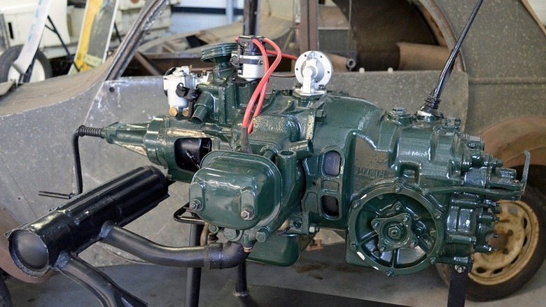 The car employed a 4.0-liter engine with a unique design. One of the cylinders was positioned higher than the other but remained horizontally opposed. The engine used two crankshafts and six connecting rods. Each piston was connected to one crankshaft by two light rods and to the other crankshaft by a heavy rod. The two crankshafts rotated in opposite directions, resulting in a complex yet elegant flat-twin engine that delivered 10.5 hp at 1,250 rpm.