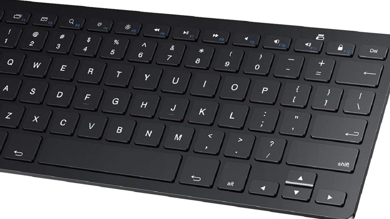 If you're on the go a lot, you might not always have access to a sufficiently large workspace for a fully sized keyboard, wireless or otherwise. If you're concerned about space economy, the best course of action is to opt for a Bluetooth keyboard that's a little smaller than the norm. Sparin's portable keyboard is smaller than most of its contemporaries, measuring in at just 4.7 by 11.2 inches and weighing around half a pound. Despite being on the smaller size, it still has a full QWERTY setup with number and function keys, which has helped earn it a 4.5 out of 5 rating based on 2,101 reviews.