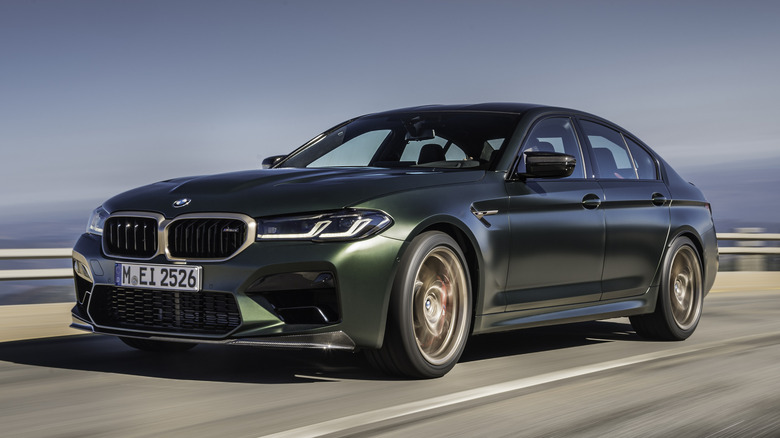 On sale for just one year and then pulled, the 2022 BMW M5 CS was limited in its production, but its power was off the charts. The CS, which stands for Competition Sport, was the highest-performance version of the M5 in 2022. It came with just four seats (instead of the typical five) with two bucket seats for rear passengers. It was powered by the S63 engine – the twin-turbocharged 4.4-liter V8 that's a repeat offender on this list — and it put out 627 hp and 553 lb-ft of torque. An eight-speed automatic transmission was standard.