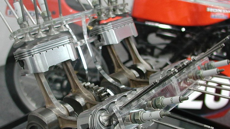 With three cylinders up front and two in the rear, one might think this engine would be inherently unbalanced. The opposite is true, as engineers changed the 90-degree V-angle of a V4 engine to a 75.5-degree V-angle and used the additional piston to resolve balancing issues. This resulted in an engine more compact than a V4 with the same displacement while eliminating the weight of a balance shaft. The V5 produced up to 260 horsepower, pushing the Honda team to multiple victories and establishing four-stroke dominance.