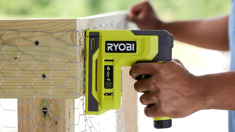 Assuming you're not looking to do things manually, some projects require a nail gun, while others require a staple gun. The Ryobi USB Lithium 4-in-1 Stapler/Nailer — in theory — can make things simple for you by offering both functions. Unfortunately, it has middling reviews from customers who've used the tool, including a 3.9 overall user score on Home Depot's website. That's not a terrible score, but it's not the best either, and you may want to just opt for an actual nail gun made by Ryobi, such as 18V Cordless AirStrike Brad Nailer, which has a 4.4 out of 5 based on over 2,100 customer reviews and is one of several Ryobi power tools that both pros and novices love.
