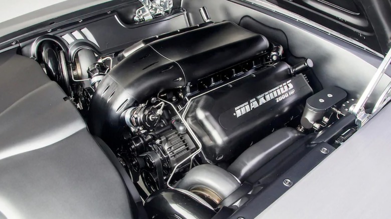 The Nelson Racing Engines Maximus 572-cubic-inch (9.4-liter) Hemi features NRE's twin-88mm-turbochargers with twin intercoolers and a dual fuel injection system capable of differentiating between 91- and 116-octane fuel automatically and adjusting for optimal performance.