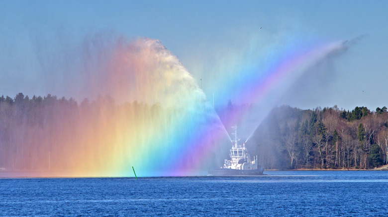 Tugboats don't spray water just for practical reasons — they also, at times, do it to celebrate. This tradition, known as a water salute, is typically reserved for prestigious and historically significant warships and cargo vessels, much like the ceremonial water salutes given at airports. One of the most common reasons for a water salute is to celebrate a ship's arrival or departure. New cruise ships, naval vessels, and commercial ships on their first trip may receive this ceremonial send-off as a wish for good fortune and safe travels. Likewise, when a ship retires, tugboats may shoot water as a final salute before it is decommissioned.