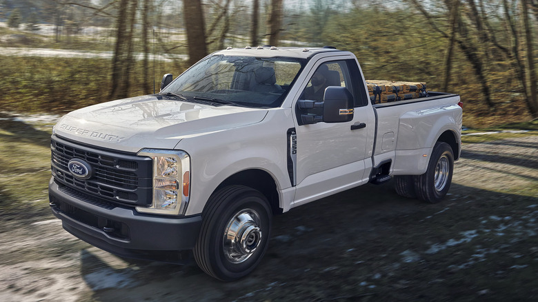 The Ford F-350 Super Duty is among the biggest Ford trucks and SUVs available on the market. The 2025 edition is available in five trims, and the automaker is offering the dually configuration as an option across all of them. Even the base-level XL trim can benefit from the extra wheels, enhancing its towing and payload capacity. The XL and other two lower-level trims come equipped with a 6.8-liter V8 gas engine making 405 horsepower and 445 pound-feet of torque. Meanwhile, the higher-level trims — King Ranch and Platinum — can handle the dual rear wheels better with their 7.3-liter V8 gas engine that produces 430 horsepower and 485 pound-feet of torque.