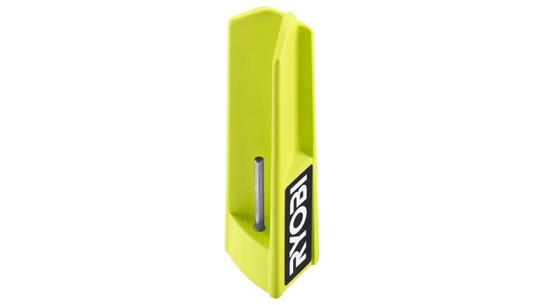 Another of Ryobi's door management tools makes this list. The Ryobi Hinge Pin Remover/Installer Tool is listed at $8.47 and is an excellent accessory solution to toss in your toolbox and call upon whenever the need arises. The tool features a plastic build with a metal pin perfectly positioned within its protective cone. To use the accessory, place it over a hinge pin on one of your doors and strike it with a hammer. The tool's outer shell will protect your door and the surrounding frame from damage caused by mishits. The tool's pin knocks the door hinge pin through the interlocking segments on either side of the door to allow for easy removal that doesn't require taking off the hinges entirely.