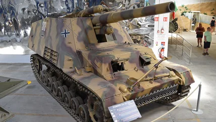The Panzerfeldhaubitze s.F.H.18/1 (Sf) auf Geschützwagen III/IV Hummel, Sd.Kfz. 165 was a self-propelled artillery gun. The world salad of a name is certainly intimidating, but we'll break it down for you. Panzerfeldhaubitze stands for "armored field howitzer," while Geschützwagen translates to "gun vehicle," and the "Sf" designation is for Selbstfahrlafette or "self-propelled carriage." Last but not least, the word Hummel is German for, you guessed it, "bumblebee" which is the nickname this vehicle was bestowed with. However, by all accounts, Hitler hated that name because he didn't think it suited something that packed far more firepower than a tiny bee sting.
