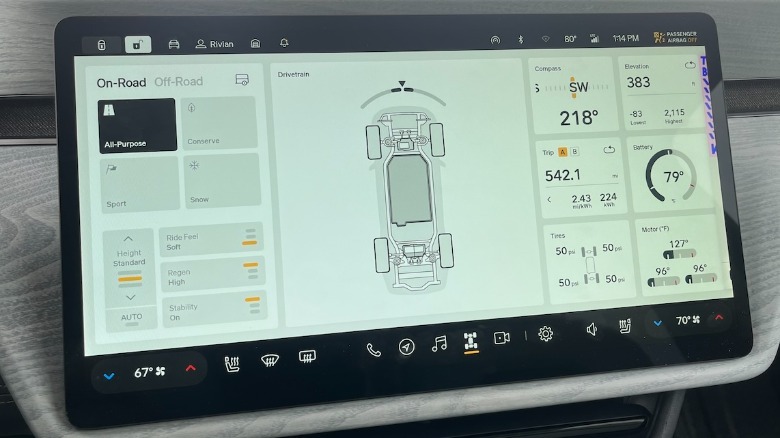 I do, however, have a qualm with the Rivian's interior. The total lack of buttons was initially pretty annoying. Adjusting the steering wheel and just about every feature of the car through the infotainment screen was a little bit of a chore at times. If you absolutely hate touch screens, the Rivian isn't for you. I got used to it eventually and, to Rivian's credit, the infotainment system worked as intended. It was relatively bug-free. The lack of Apple CarPlay or Android Auto was a little maddening at times and sometimes my phone's apps wouldn't always play nicely with the sound system.
