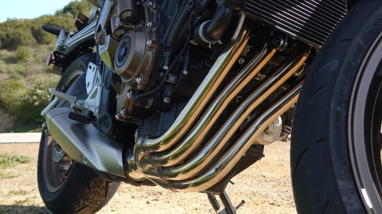 The solid, planted nature of the CB650R immediately revealed typical Honda build quality. And the readily accessible torque of a 649cc inline-four always helps, despite mostly tame exhaust valving that only starts to scream a bit above 8,000 RPM. (Not to mention gorgeously retro "waterfall" pipes on an otherwise simple, yet modern design.)