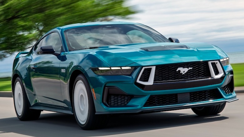 Perhaps the most noticeable addition is the "Adriatic Blue Metallic" that very much looks like the iconic Teal color on classic '80s and '90s Fords. This color, according to Ford, is available on every Mustang for the 2026 model year. For the FX Package specifically, you get special Oxford White GT and 5.0 badges, as well as a "MUSTANG" script on the back window. A special set of white 19-inch wheels also makes its debut. The new duds are perfect for a highway sprint to Toys "R" Us to pick up a copy of "Metal Gear" for the NES.
