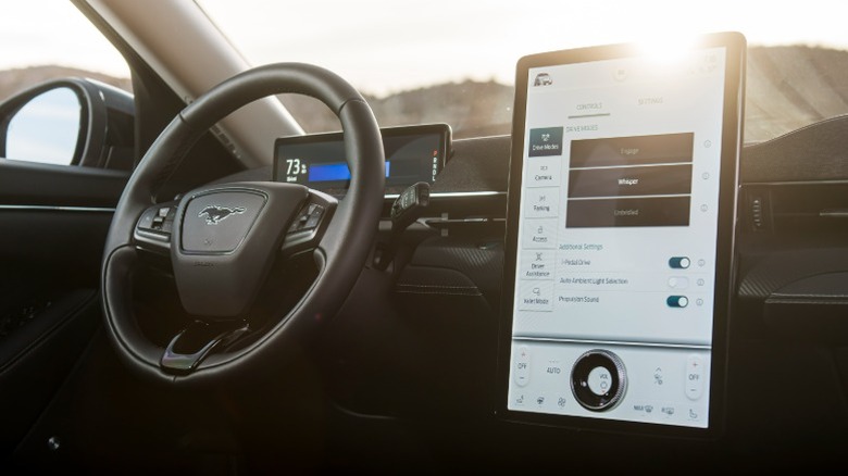 The Mustang nameplate may not necessarily be associated with cutting-edge tech, but the Mustang Mach-E is an entirely different beast. Sure, it echoes some styling cues and has the iconic Mustang badge up front, but this isn't a low-slung muscle car. Instead, it's an EV crossover, albeit one that can hit 60 mph quicker than even the Mustang Dark Horse.