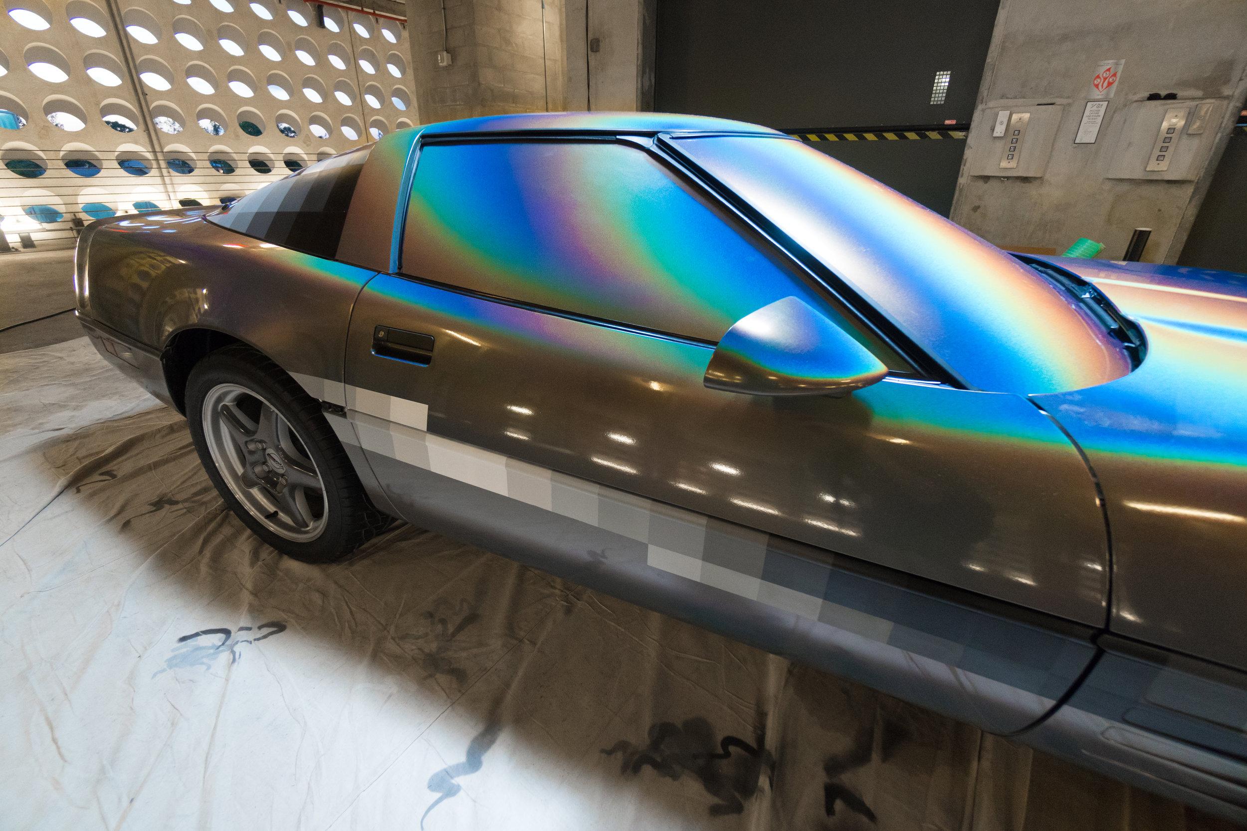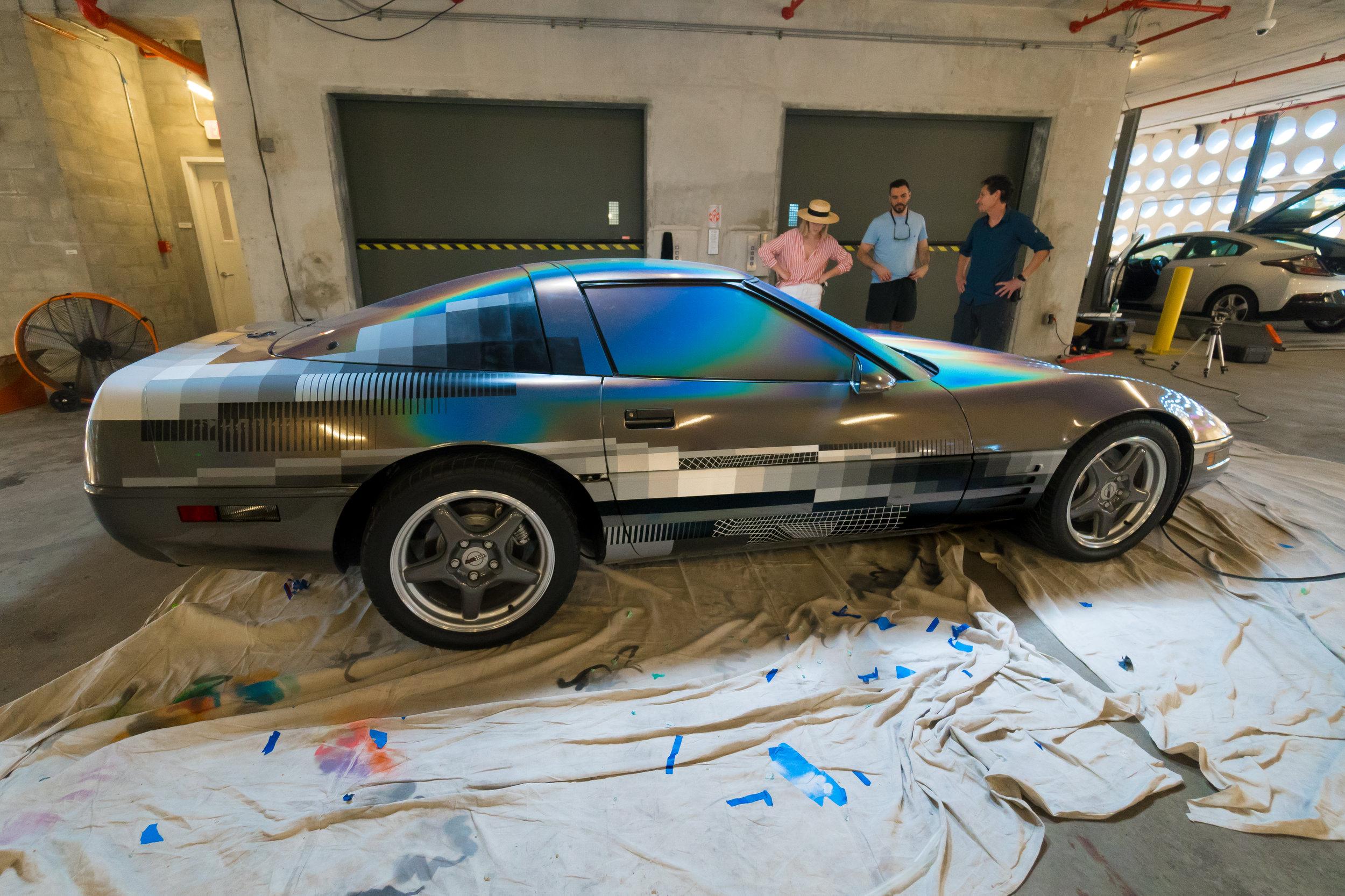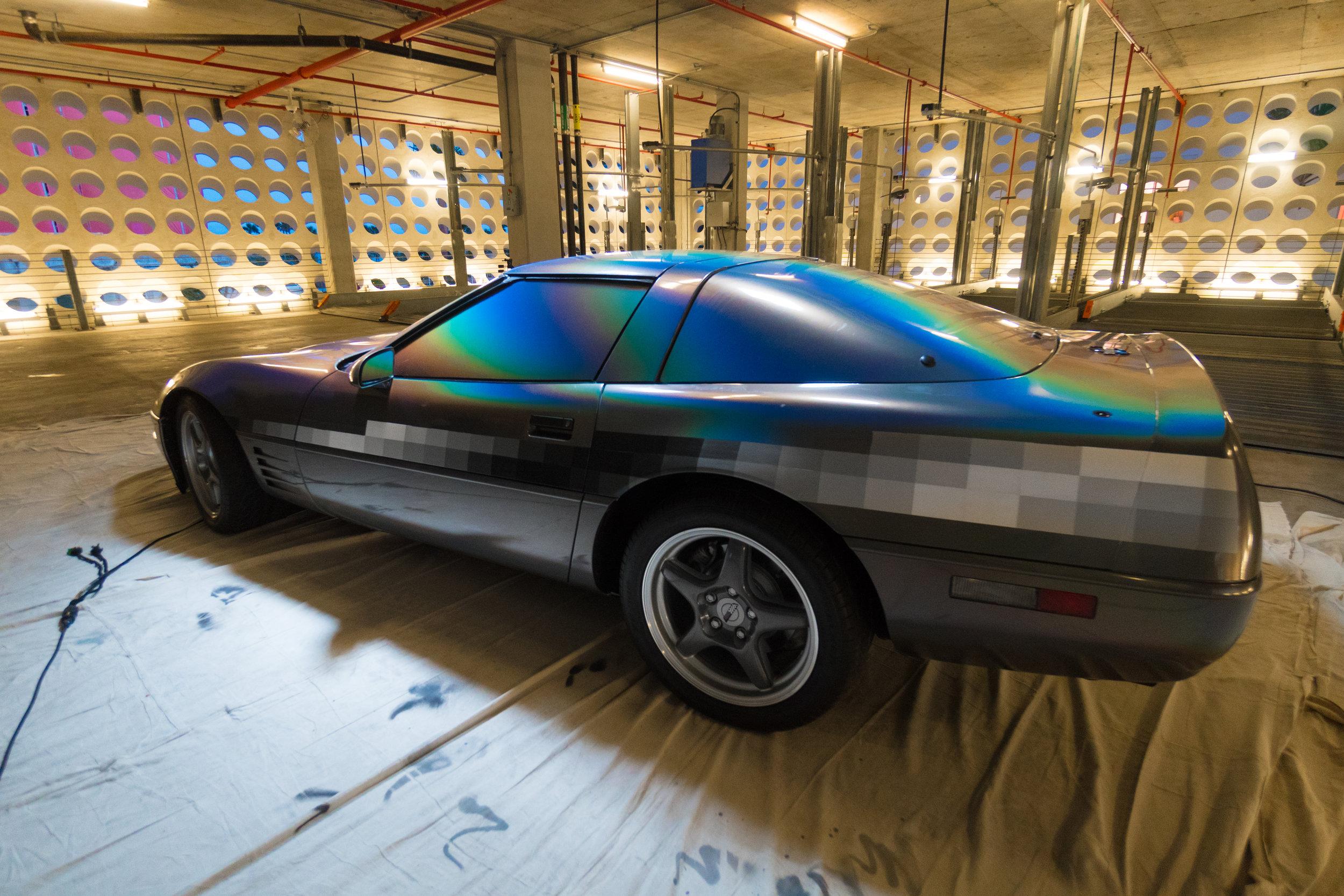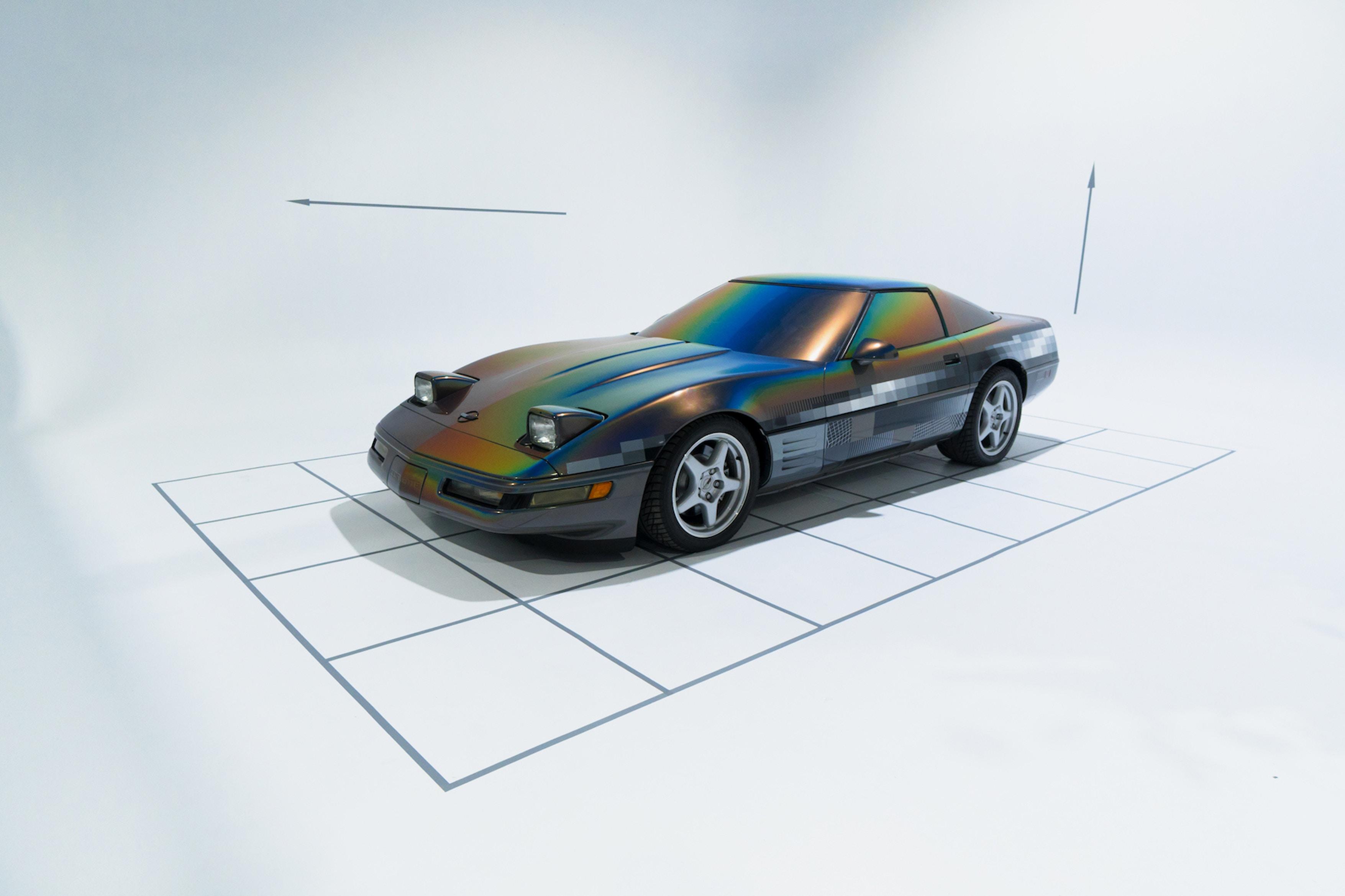 This week anonymous artist Felipe Pantone revealed his latest art piece installed on and in a 1994 Chevrolet Corvette. Die-hard stock paint lovers of the Corvette were probably mortified. Digital madness inspired artwork took the vehicle to a place it'd never been before. Blocks of color, mood ring spray, and the blacks and whites of the video tapes you threw away in 2002 – they're all here.