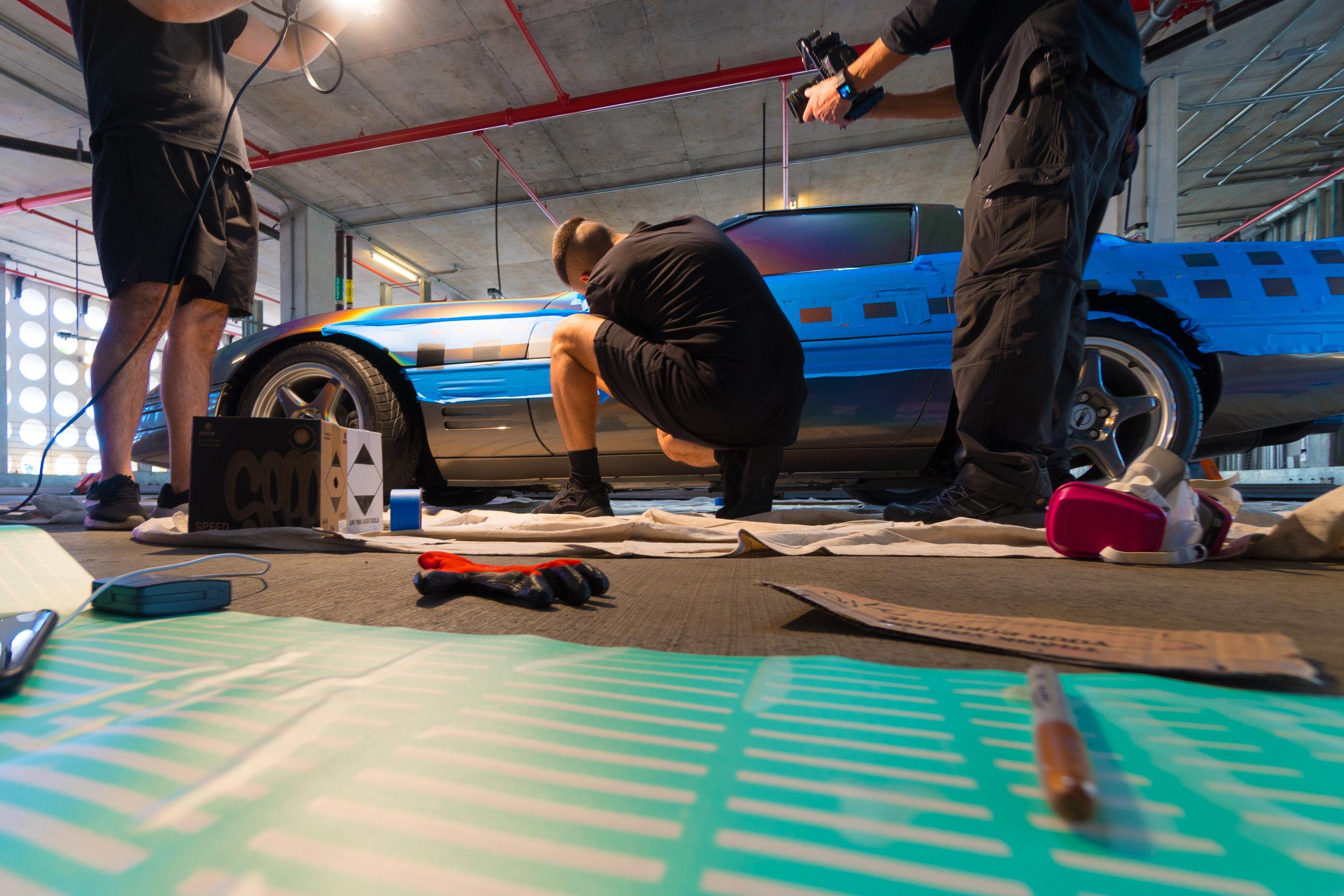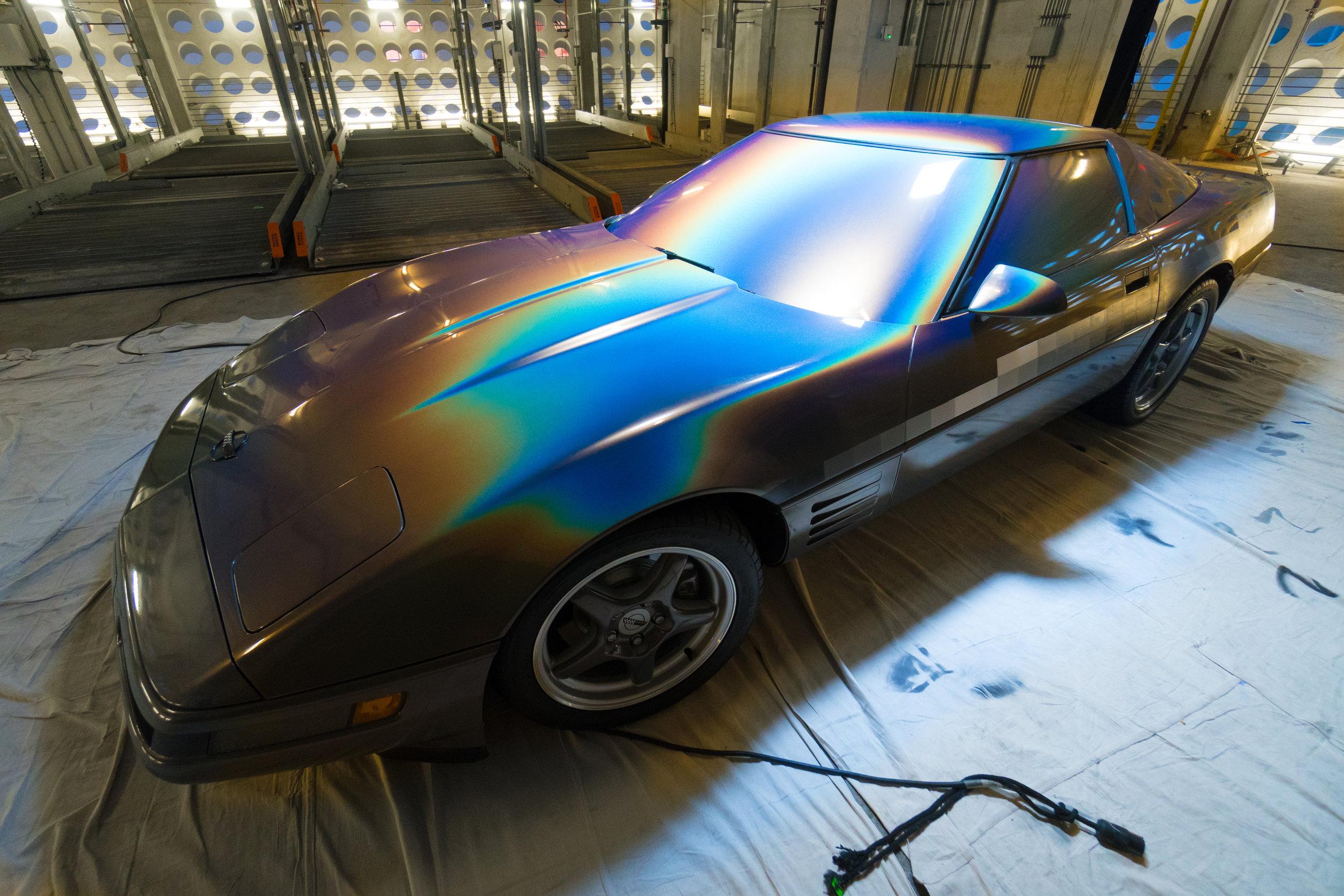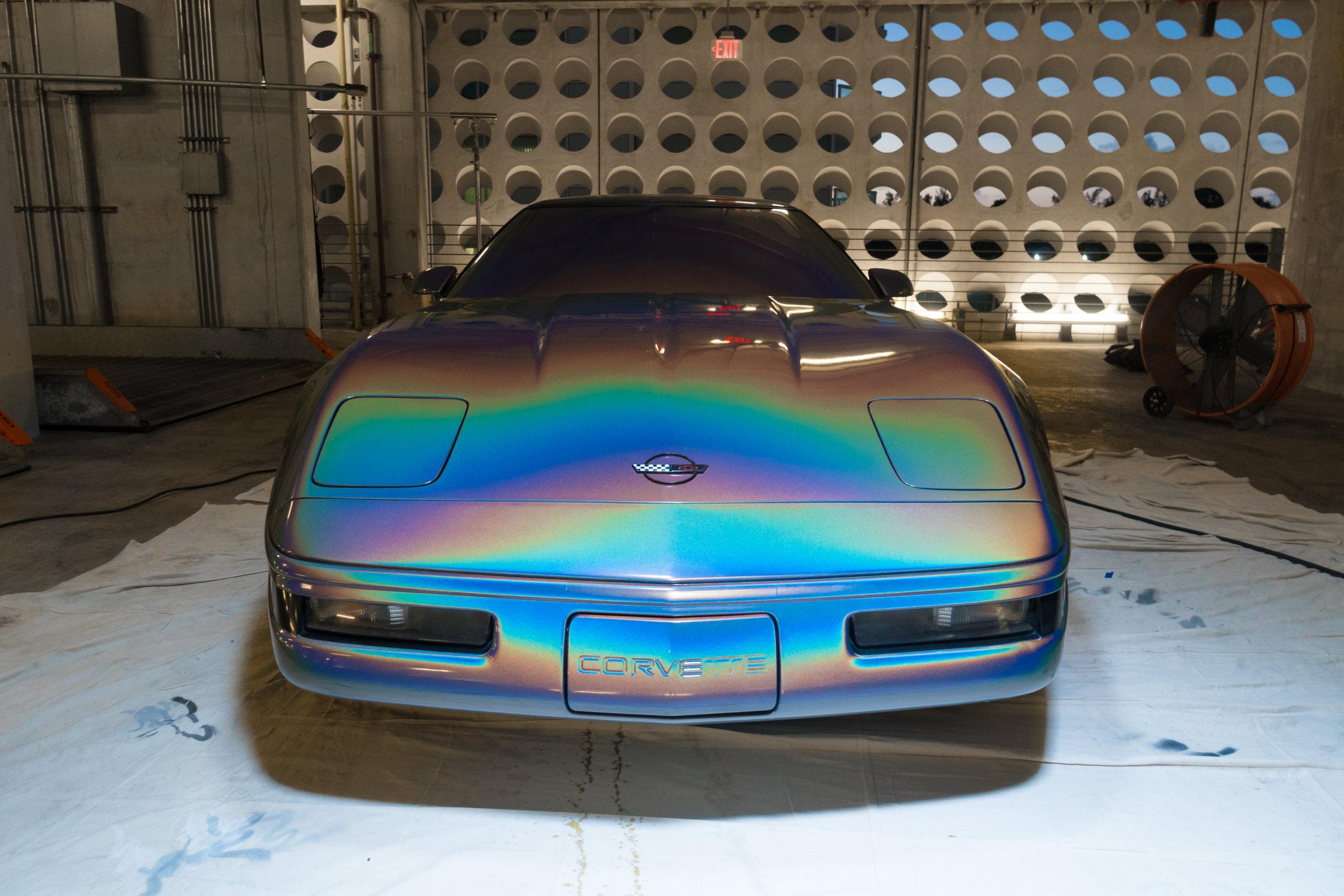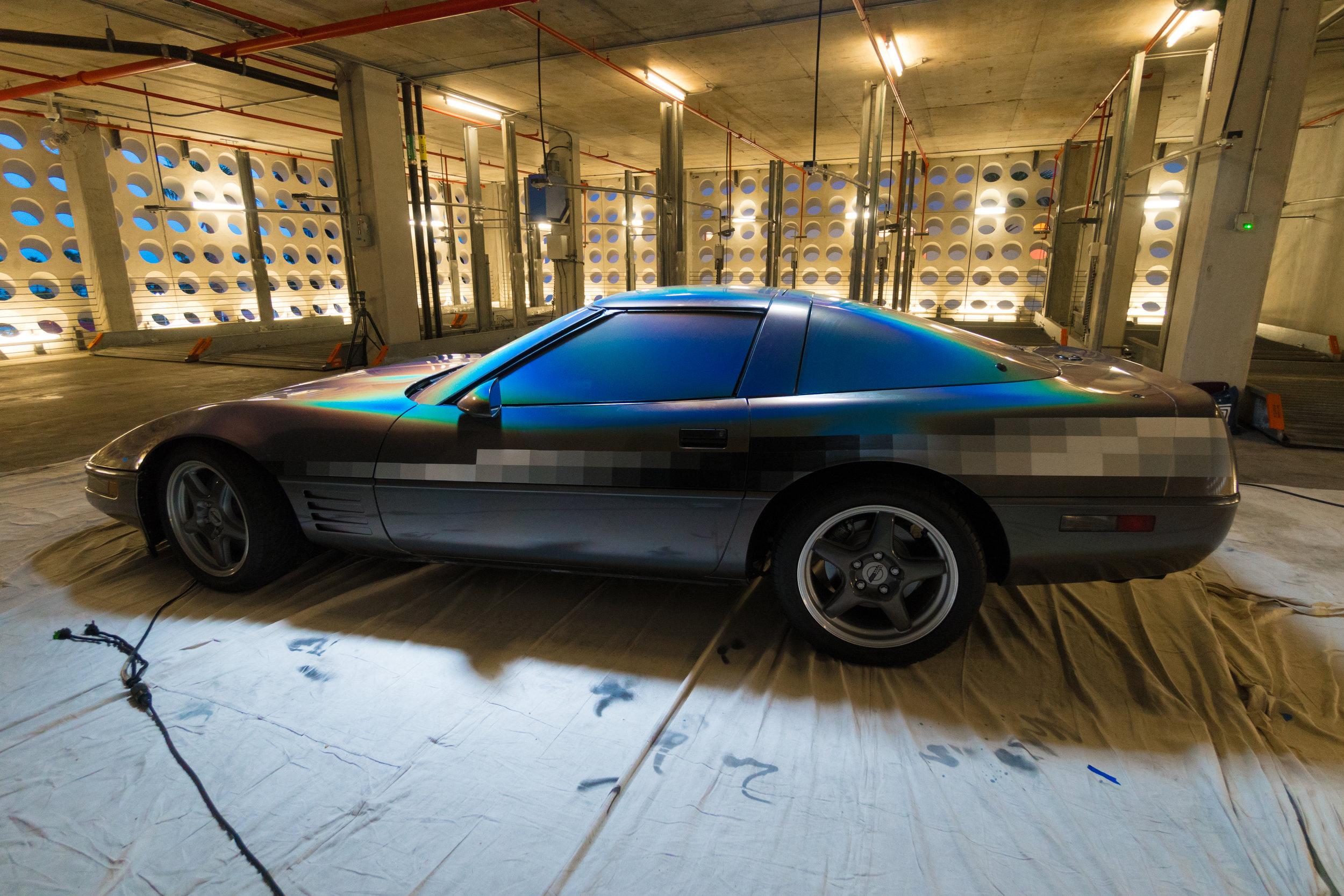 This week anonymous artist Felipe Pantone revealed his latest art piece installed on and in a 1994 Chevrolet Corvette. Die-hard stock paint lovers of the Corvette were probably mortified. Digital madness inspired artwork took the vehicle to a place it'd never been before. Blocks of color, mood ring spray, and the blacks and whites of the video tapes you threw away in 2002 – they're all here.