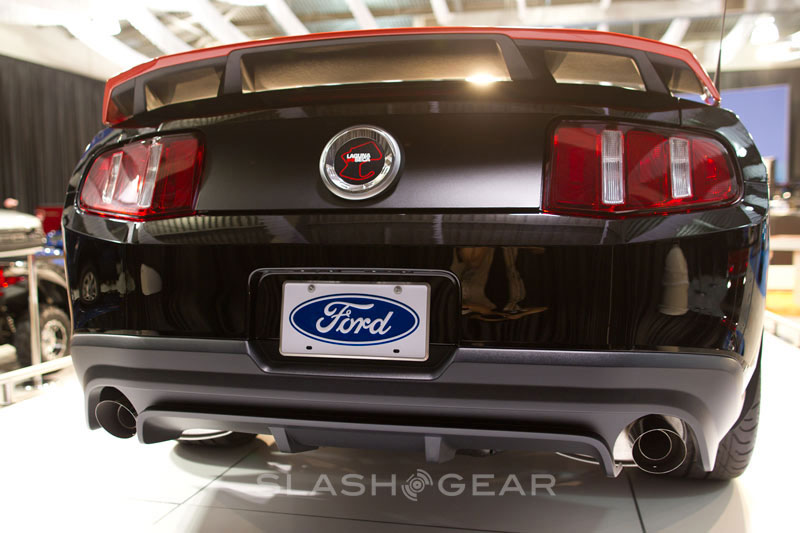 While we were at the Ford booth waiting for the unveiling of the 2012 SVT Raptor truck, I spied a 2012 Boss 302 Laguna Seca sitting in the back of the display. These cars have been around for a while but there are still so few of them on the street that most of us will never have the chance to get up close and personal with one.