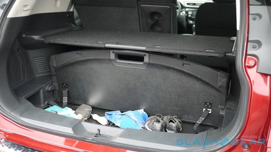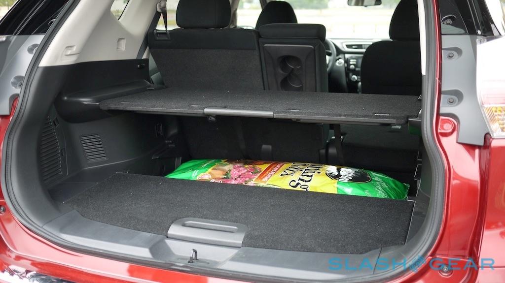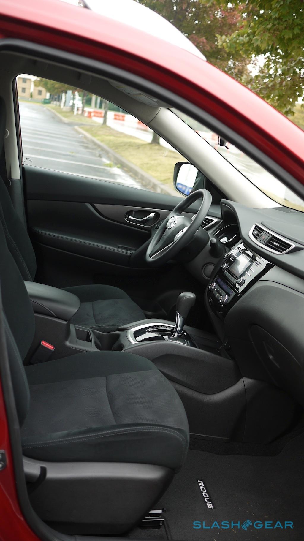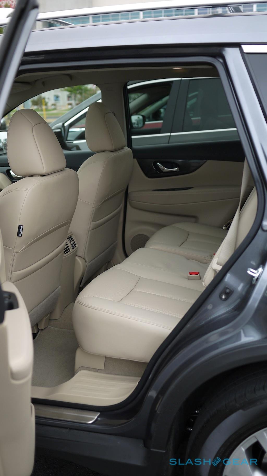 The Rogue S ($22,490 FWD/$23,840 AWD) gets 17-inch wheels and the 5-inch NissanConnect system, while the Rogue SV ($24,230 FWD/$25,580 AWD) steps up to 17-inch alloys and adds in SiriusXM satellite radio and two more speakers, plus dual-zone aircon. Finally, the Rogue SL ($28,070 FWD/$29,420 AWD) gets leather seats, Bose 9-speaker audio, the NissanConnect 7-inch system with navigation, 18-inch alloys, and heated seats which first start warming your lower back and thighs, since Nissan's research suggests you notice that first. Options include a moonroof ($1,320) which covers the front two rows in glass, and premium packages for the SV ($1,420) and SL ($1,990) with features like a power tailgate.