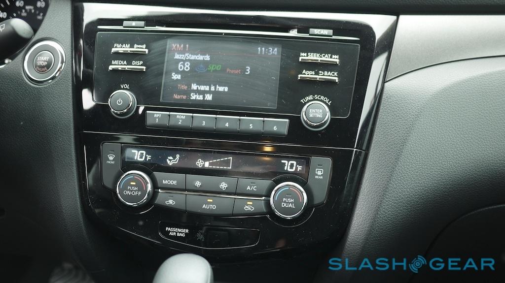 Standard kit includes either a 5-inch color dashboard display with CD, radio, USB, and Bluetooth connectivity, or the more advanced 7-inch display which adds in navigation and the NissanConnect system with app support. Right now, there's just a handful of apps like Pandora, Facebook, Google search, and iHeartRadio, and Nissan is tightly controlling what can be loaded so third-party developers can't add their own content.
