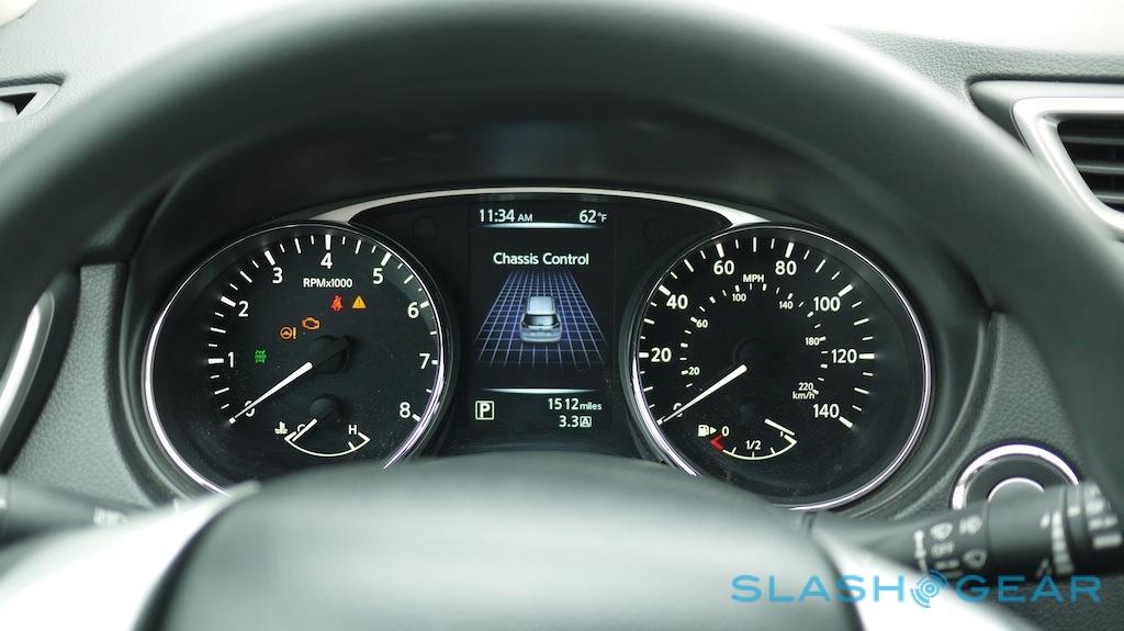 Corners, meanwhile, use Nissan's new Active Trace Control, which adjusts turn-in using the inner or outer brakes so that it more closely matches your actual steering. It's a subtle effect – Nissan's target isn't sports drivers – but you can notice the difference when you turn it off through the 5-inch driver information screen in the center binnacle.