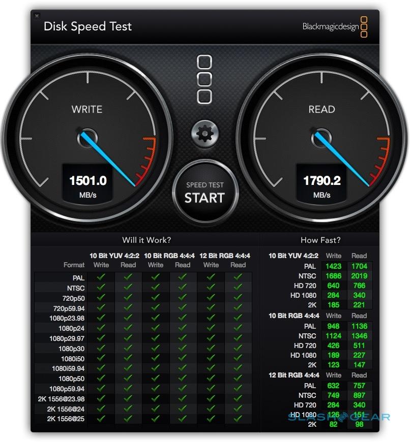 For GPU, the 107.47 fps score put the iMac comfortably at the top of the chart. In Blackmagic's Disk Speed Test, the iMac's speedy flash storage managed a near-ridiculous 1,790 MB/s reads and 1,501 MB/s writes.