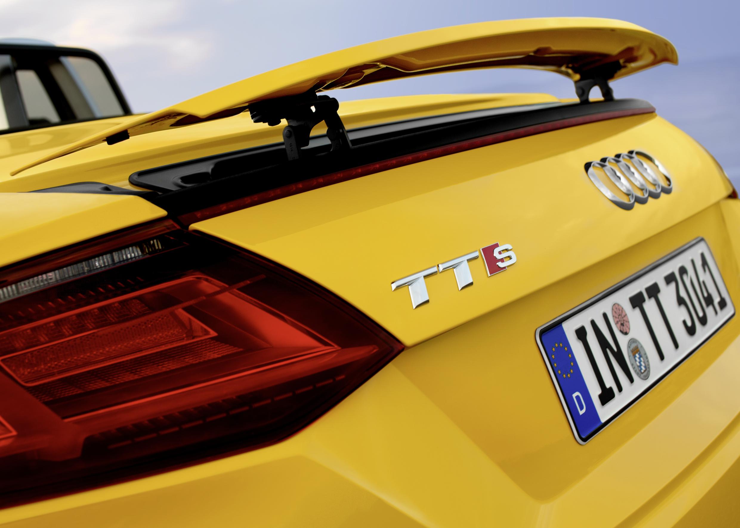Now that you know which model you're getting, you'll want to know a bit more about that soft-top that you'll be folding back come next Spring. The retracting roof is electrically powered, and thanks to materials like aluminum and magnesium, this new TT Roadster is roughly 6 pounds (2.7 kilograms) lighter than the 2014 model. As usual with a convertible, it's important to note that it's about 200 pounds (91 kg) heavier than the standard two-door coupe, coming in at roughly 2,900 pounds (1,315 kg).