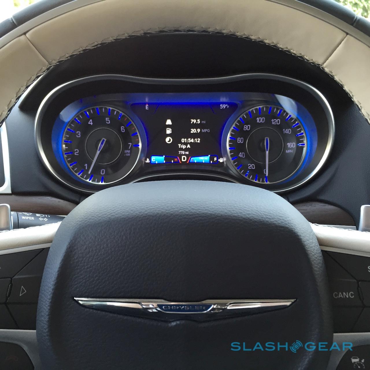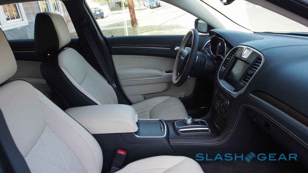 It's not a clean sweep, though. Chrysler switched to a rotary electronic gear selector, which works well, but then failed to really capitalize on the space that freed up: you get no more center console storage than you would if there was a traditional shifter poking out. The wheel is overly large, and the 8.4-inch square touch panel atop the center stack tries to fit too much onscreen at any one time, at least by default.