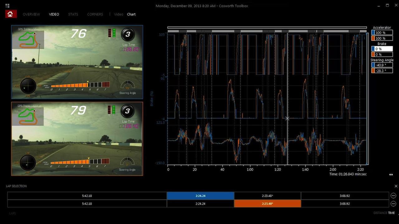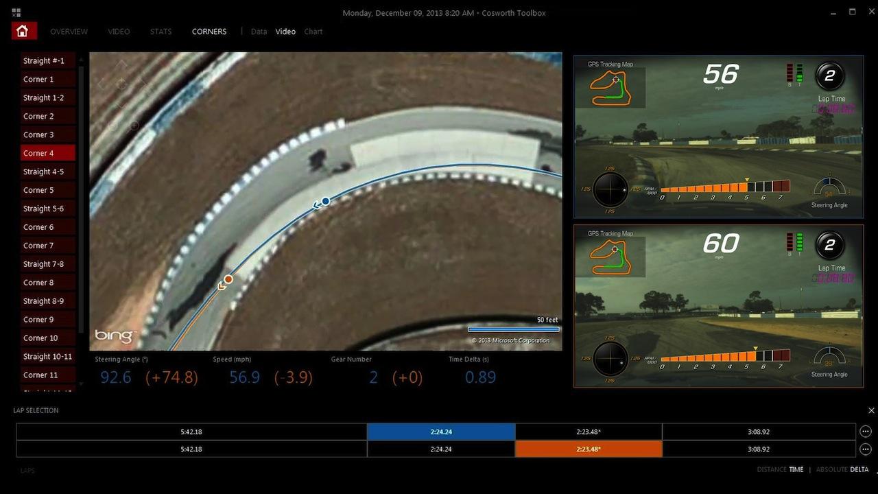 However, Chevrolet will also be including the "Cosworth Toolbox" package with the PDR option, developed by the motorsports engineering company to allow deeper analysis of lap performance. That also means comparing different laps to see how consistent they were, to spot trends in cornering, speed, and braking, and even to overlay the route on a satellite map of the track pulled from Microsoft's Bing.
