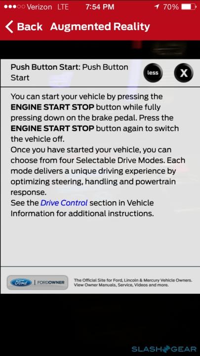 Meanwhile, Ford has created a companion app for the new Mustang, though unlike most car apps it's not for remote unlocking and locating it in a parking lot. Instead, it has digital versions of the owners manual and parts catalogs, along with an augmented reality tool that floats tips & tricks over the dashboard. Most useful, perhaps, is the ability to hunt down nearby race tracks should you feel the need to lay down some rubber in an area you're unfamiliar with.