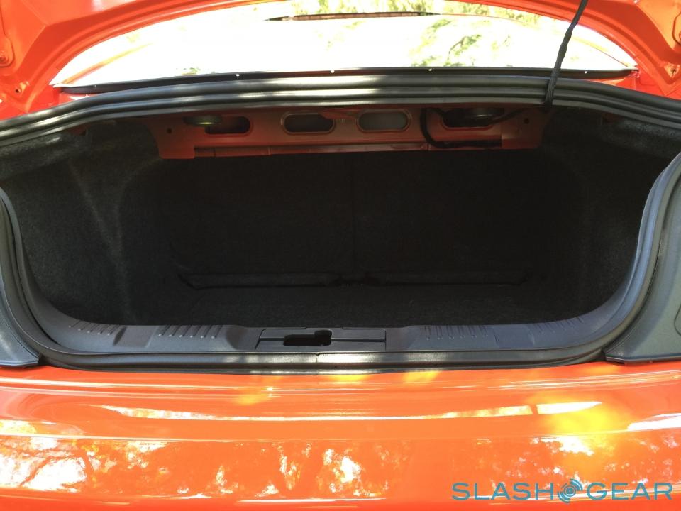 Ford SYNC is an option, as is blind spot and cross-traffic warnings, adaptive cruise control, and voice controlled navigation. EcoBoost Premium and GT Premium models can be fitted with a Shaker Pro Audi System, with HD radio, a CD player, and twelve speakers sharing 390W of amplification (one of which is an eight-inch subwoofer). It's loud and meaty, though I had more fun listening to the Mustang's own soundtrack.