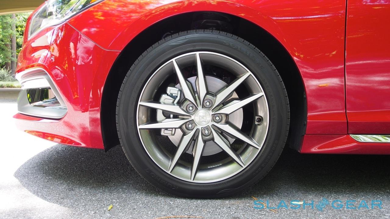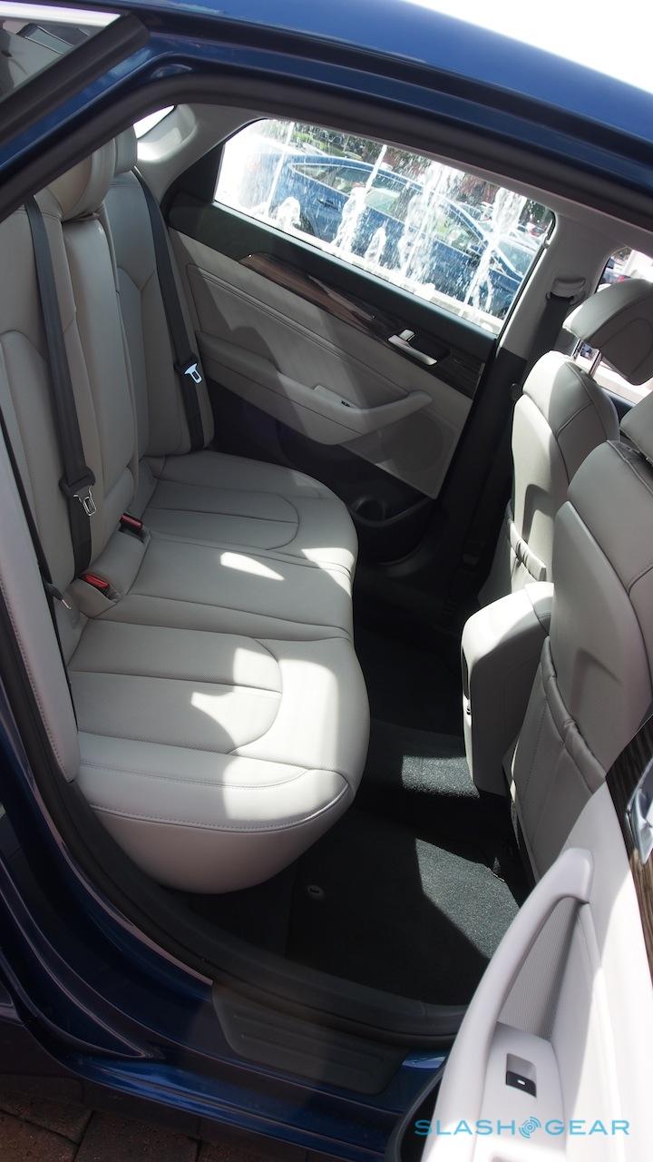 As for the tech, all get cruise control, ABS, traction control, hill-start assist, tire pressure monitoring, and an extra focus on besting the NHTSA's Small Overlap Test (those results aren't in yet, though). The blind spot detection (standard on the Limited and Sport 2.0T; optional on the Sport and Eco) can be optionally upgraded on the Limited/Sport 2.0T to Lane Departure Warning, which monitors even further back in the lanes either side of the Sonata and flags up if there's a fast-approaching vehicle there which might scupper your own maneuvering.