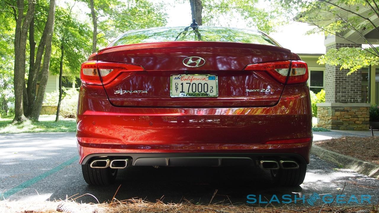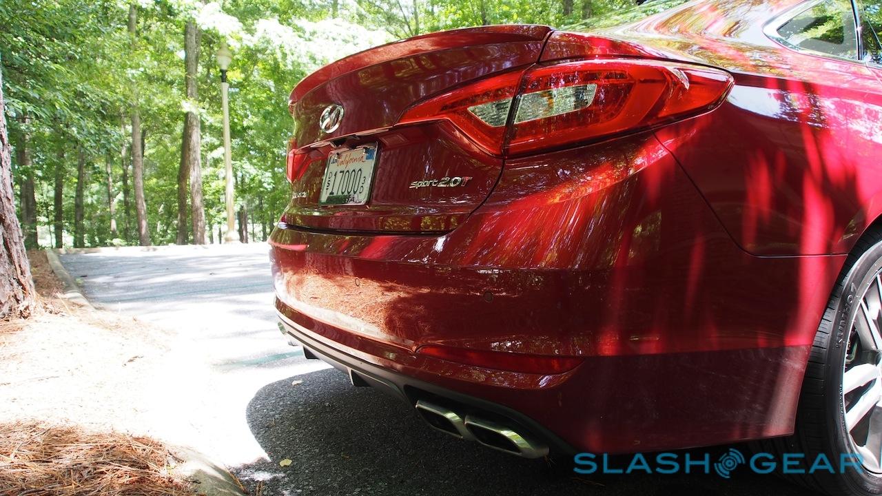 At the back, there are distinctive bulging lamp clusters and the option of quad, chrome-tipped tailpipes and a diffuser on the Sport model. The crease lines work, though the standard-fit spoiler looks a little tacked-on; it and the rest of Hyundai's aero work must be doing something right, however, as the 2015 Sonata shares a class-leading drag rating with Ford's Fusion.