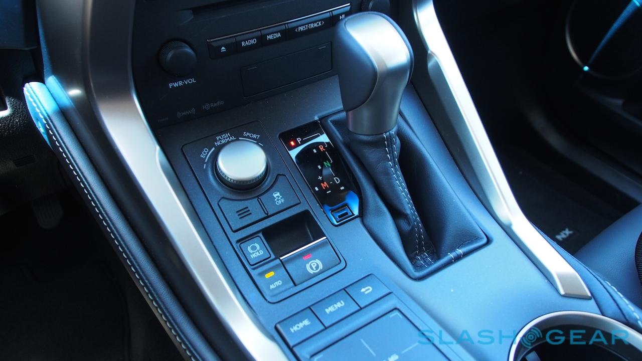 With 235 HP and 258 lb-ft of torque, the NX 200t isn't exactly a Nürburgring candidate. Lexus quotes a 0-60 mph timing of 7.2 seconds in the FWD model, though the AWD's power split system shaves 0.2 seconds off that. Fuel economy hasn't been officially EPA tested yet, but Lexus expects 21/28/24 mph for city/highway/combined for the AWD (the FWD will do a single point better in the city, Lexus predicts). With mixed driving, I saw 26 mpg accordion got the onboard computer.