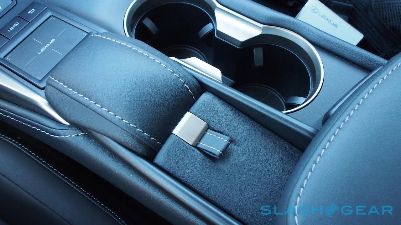 Obviously you'll need a phone with the right hardware itself in order to take advantage – if you're an iPhone user, that means adding a Qi-compatible case – but otherwise it's a case of dropping your Nexus 5, Galaxy S5, or Lumia Icon into the recess. Unfortunately, that recess is too small for a phablet like Samsung's Galaxy Note 3, despite there being enough space that Lexus could feasibly have enlarged it to suit. An arguably better solution would've been a flat bay and the same ultra-grippy finish as the bottle holders to keep phones from sliding around.