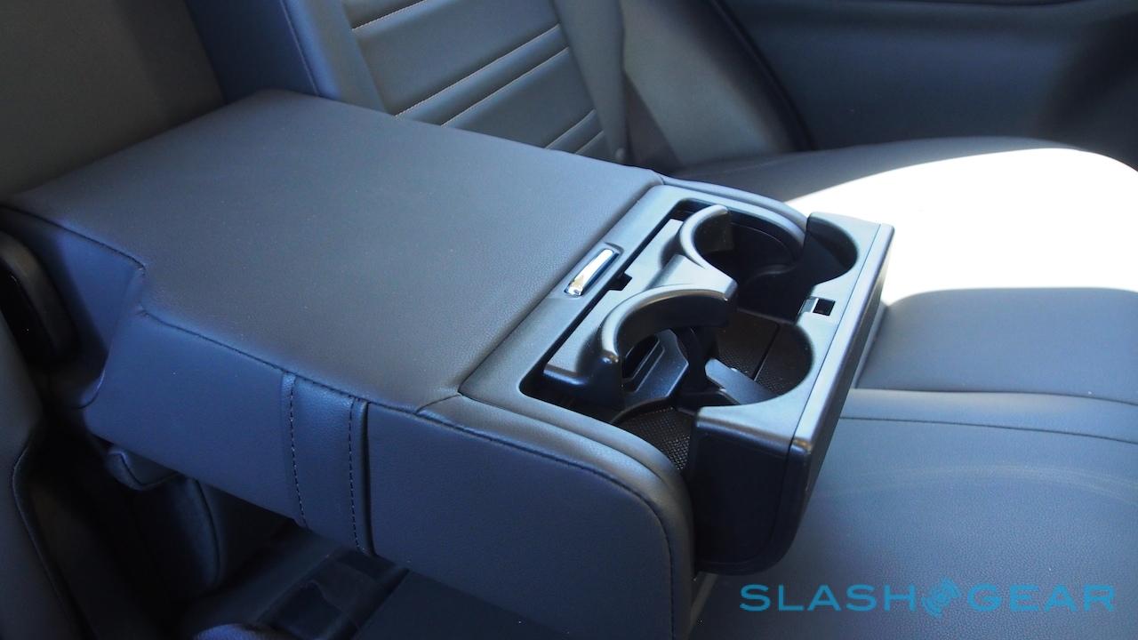 Nonetheless, there are some considerate touches, though perhaps of arguable usefulness. A "why didn't they think of that before" is the extra-grippy lining to the bottle holders, which is tenacious enough that you can twist and break the seal on a new bottle with only one hand. Overhead lights illuminate with a touch rather than a button. More gimmicky, however, is the sunglasses nook alongside, the magnetic lid of which has a mirror underneath.