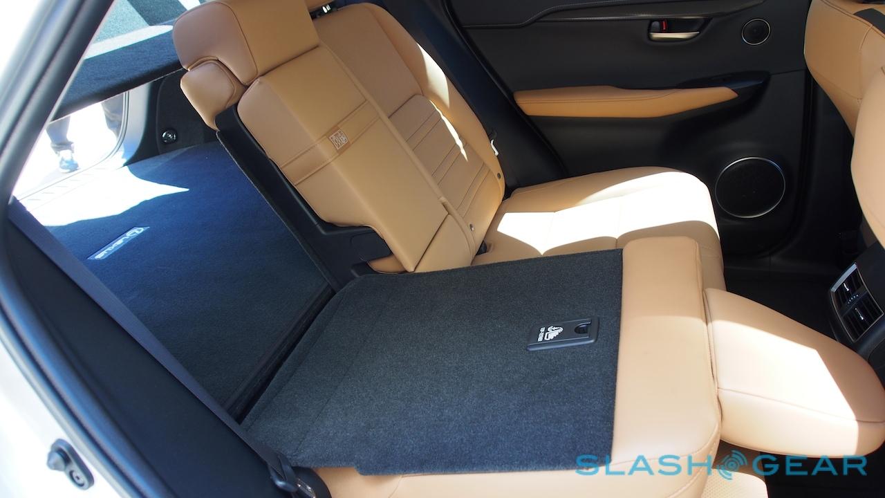 That's helped by the broad load area with minimal arch intrusion, though even with the 60/40 split rear seats folded (power-folding optional, as is a power rear hatch) the NX falls short in pure cubic feet against the competition. There's 17.7 cubic feet with the seats up, and 54.6 with them down; Lexus is also particularly proud of its folding cargo cover, which tucks under the trunk floor when not needed, but a retractable fabric cover would arguably do much the same thing.