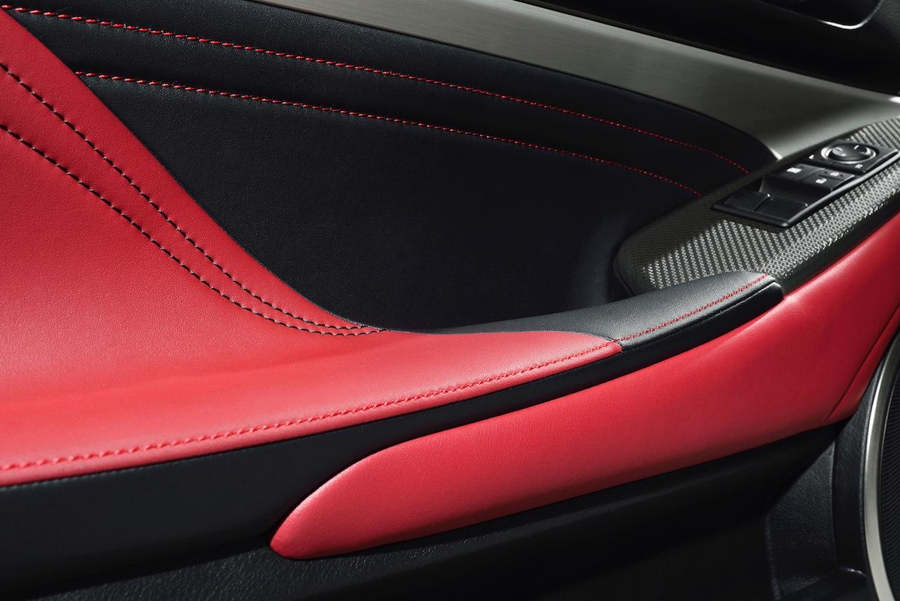 As for the styling, that gets a new "F" design mesh spindle grille, 19-inch F SPORT mesh allows with dark metallic finish, and some other external tweaks. Inside, the moving driver display system of the LFA has been distilled into a similar version for the binnacle, and there's a perforated lather wheel and shift knob. The red leather seats with contrast stitching are also F SPORT exclusives.