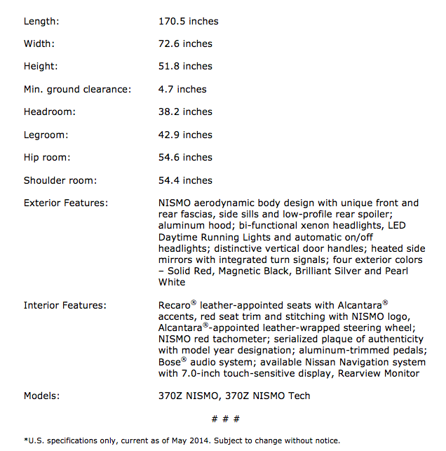 2015 Nissan 370Z NISMO Breaks Cover With GT-R Cues