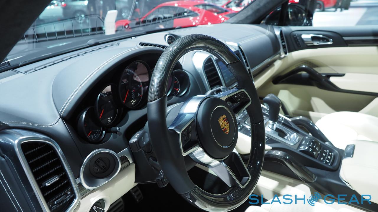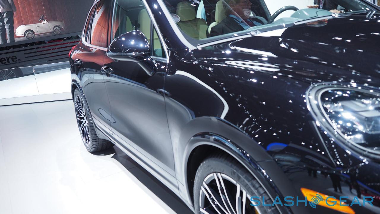 The 2015 Porsche Cayenne Turbo S is being shown at NAIAS 2015 this week as the top model of the brand's sporty SUV model series. This vehicle works with 570 hp (419 kW) and 800 Nm (590 ft lb) of torque from its re-engineered 4.8-liter V8 biturbo engine and, according to Porsche, is is able to run the North Loop of the Nürburgring in 7:59.74 minutes. The 2015 Porsche Cayenne Turbo S also works with standard Porsche Composite Ceramic Brakes (PCCB) just in case you want to stop.