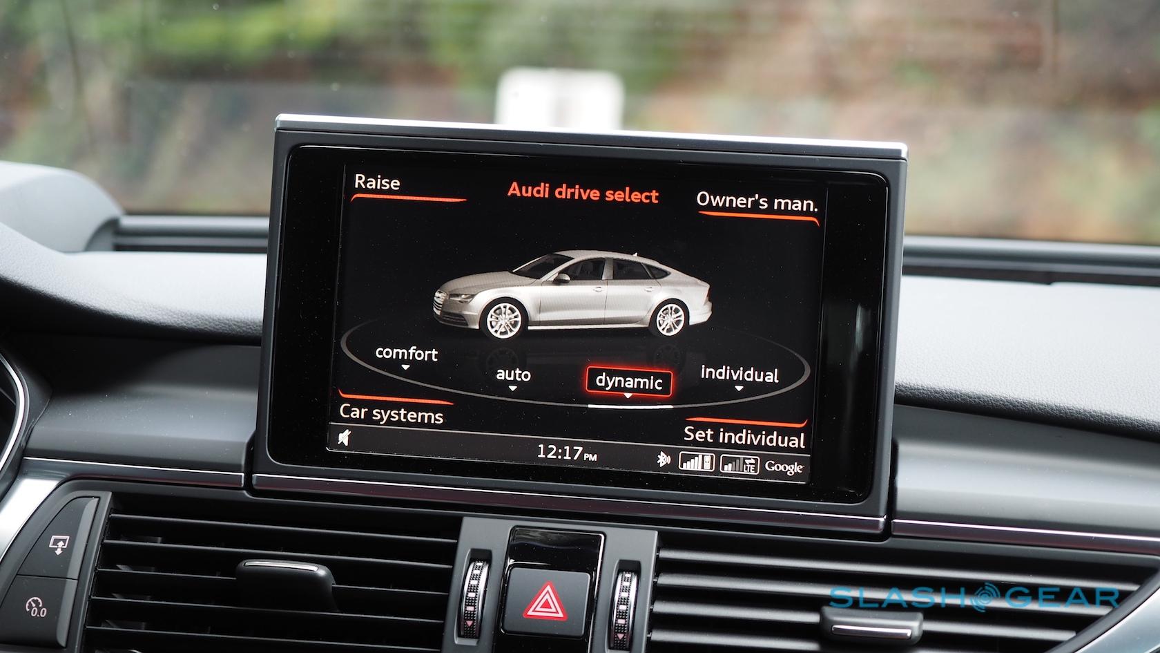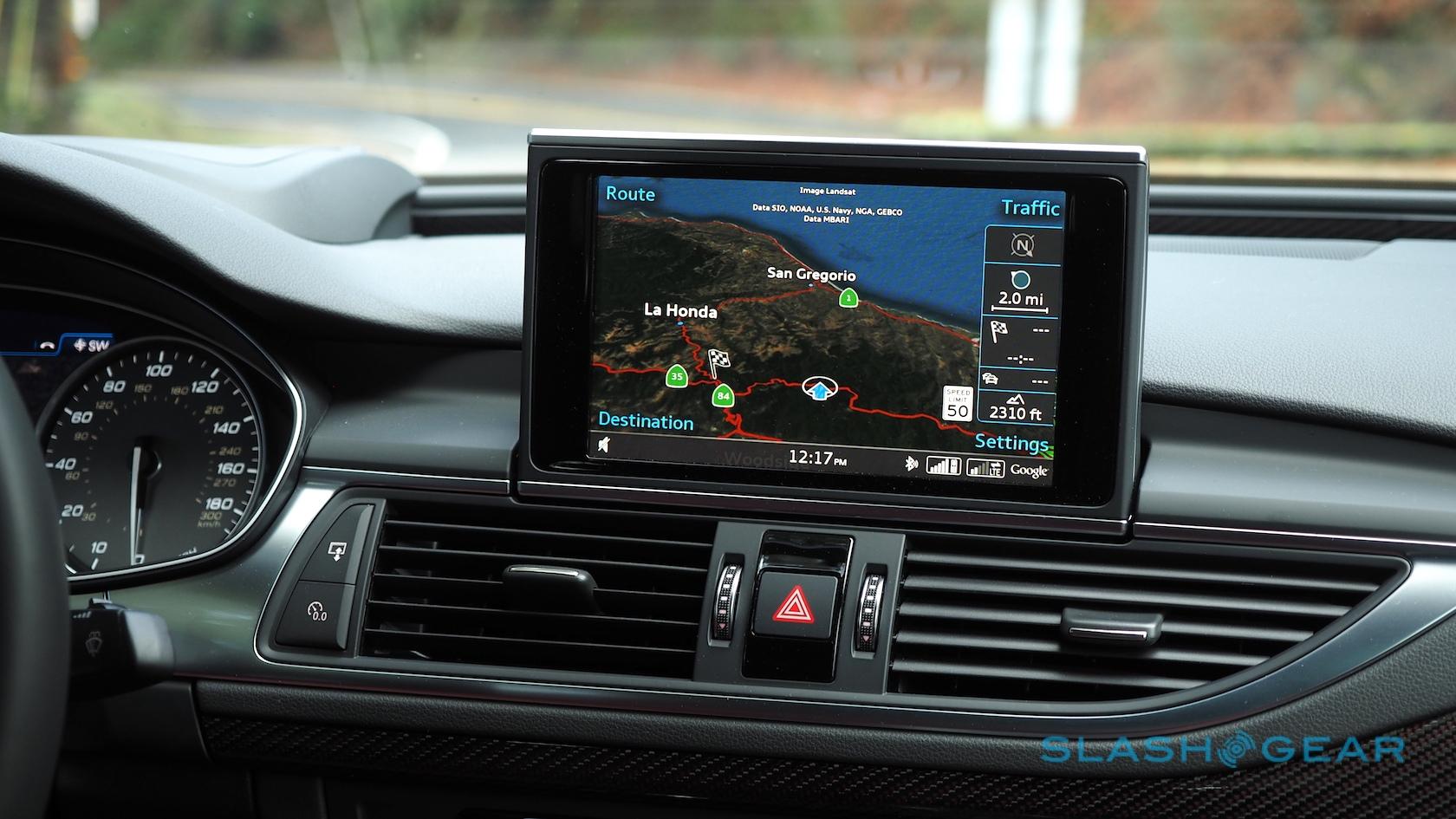 As well as the pop-out display atop the center stack, there's a second screen for the driver sandwiched in-between the slightly canted tachometer and speedometer. It not quite Audi's excellent Virtual Cockpit from the TT, R8, and most recently the Q7 SUV, which does away with analog dials altogether, but it still manages to accommodate a big chunk of mapping for the road ahead. The S7 gets a head-up display as standard, too, showing speed and upcoming directions.
