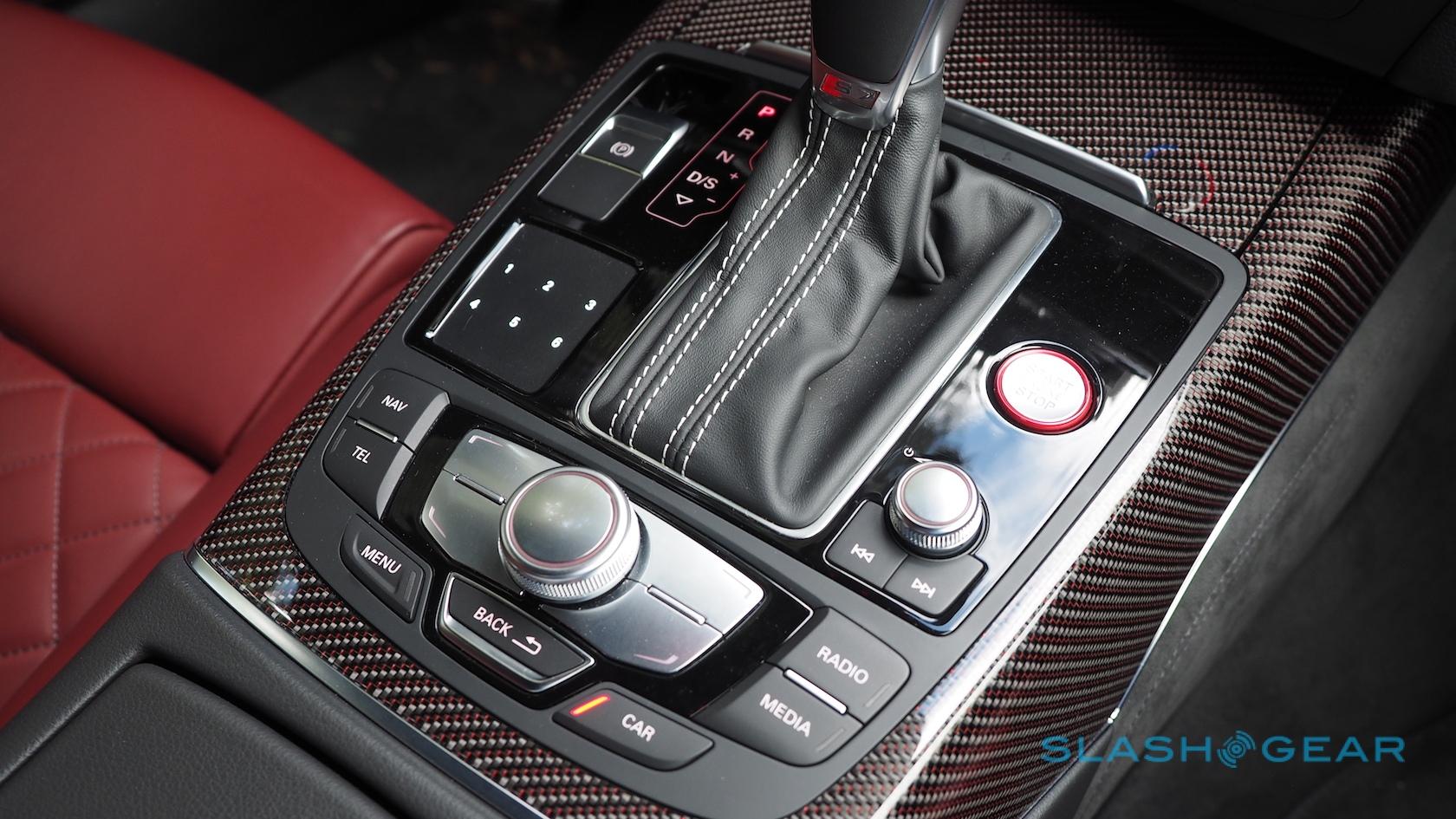 Everything's controlled via the MMI system, a combination of a scroll wheel, shortcut buttons, and a trackpad down by the gear shift. It can be mildly confusing at first: the wheel is surrounded first by a ring of four contextual buttons which relate to app-specific options shown on-screen, and then by a second ring of shortcuts to jump to navigation, media, and other features.