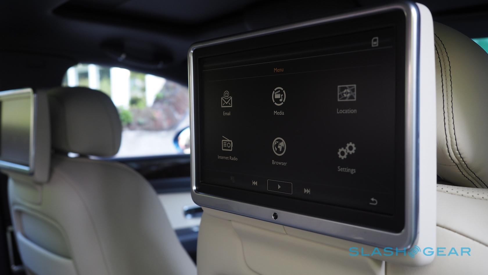 Bentley clearly expects most of the fun to be happening in the back. The £3,025 ($3.9k) full-length center console turns the Flying Spur into a four-seater, replacing the rear bench with two individual seats that are controlled with a pop-out touchscreen remote. A £1,665 ($2.2k) refrigerator between them is perfect for a bottle of Bollinger (or, in my case, some sandwiches my Mom made for me); there's also the rear-seat entertainment package with its twin TVs and DVD players for £5,695 ($7.4k) and an optional WiFi hotspot.