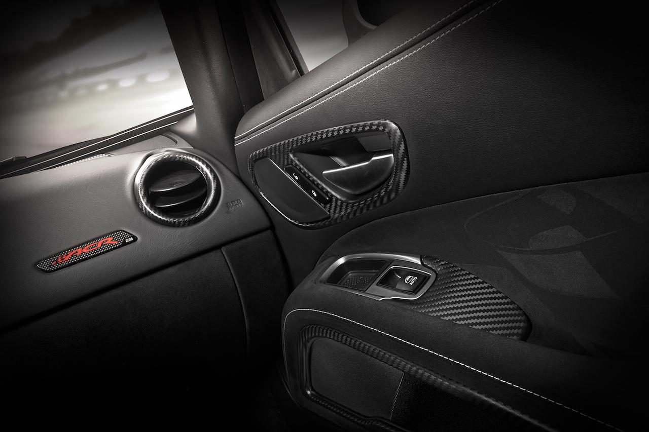 On the body kit side, there's a dual-element carbon fiber rear wing that can be adjusted, along with a carbon fiber diffuser at the back, a unique SRT hood with removable louvers at the front, a detachable extension for the front splitter, and finally additional dive planes.