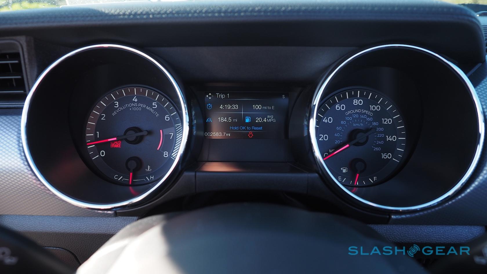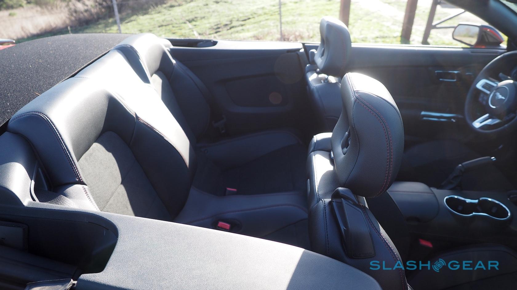 What's the same as the regular Mustang GT is the 435 HP and 400 lb-ft. of torque, along with a six-speed manual transmission. Ford claims 15 mpg in the city, 25 mpg on the highway, and 19 mpg combined; you'll get mildly better numbers from the automatic, but none of the pride that comes from rowing your own gears.