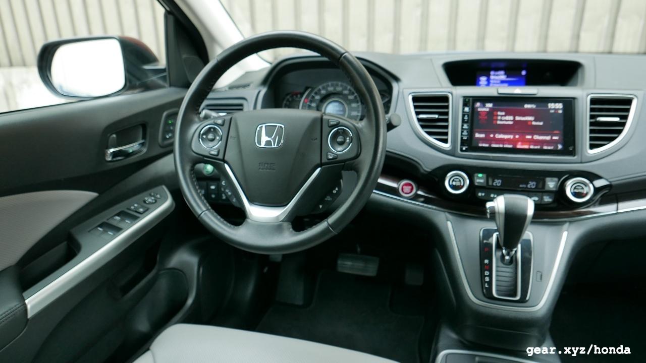 While the 2016 Honda CR-V might score major points with its practical interior design, there's no denying that the passenger environment itself is fairly plain. Even the most expensive Touring trim level I spent a week driving, with its leather-wrapped seats, top tier touchscreen infotainment system, and upgraded wood paneling felt like it was a step or two behind the flourish being demonstrated by rival SUVs like the Ford Escape or the Kia Sportage. Functional yes, but flattering...not really.