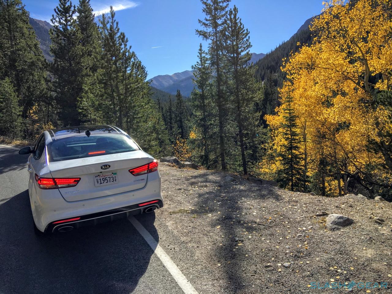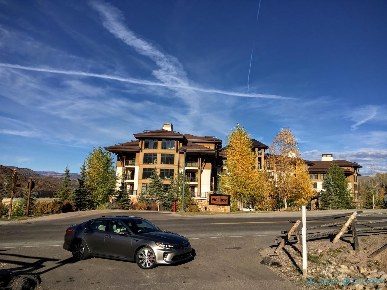 It means that the best way to feel the difference versus the old Optima is to drive the new model, since the most significant changes can't be seen with the naked eyes. My more spirited driving through the twists and turns in, around, and outside of Aspen was nothing short of fun, something you don't necessarily expect from a sedan in this class. Handling proved to be astonishingly good, especially when paired with Kia's 245 HP, 2.0-liter turbo with 260 lb-ft of torque available with the upper trim levels.